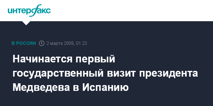 Д.Медведев впервые посещает Испанию. Его пригласил испанский король, который летом прошлого года приезжал в Москву.