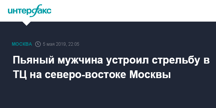 Москва. 5 мая. INTERFAX.RU - Задержан нетрезвый мужчина открывший стрельбу в торговом центре на северо-востоке Москвы, сообщил "Интерфаксу" информированный источник.