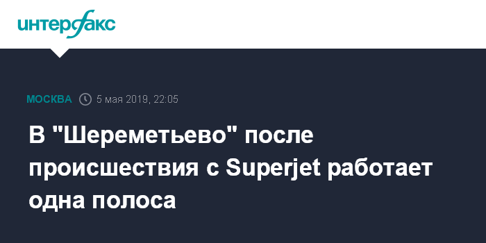 Москва. 5 мая. INTERFAX.RU - В московском аэропорту "Шереметьево" после авиапроисшествия с самолетом SSJ-100 "Аэрофлота", выполнявшим рейс SU1492 в Мурманск работает одна полоса, сообщили "Интерфаксу" в ведомстве.