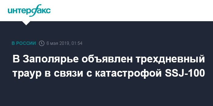 В Заполярье объявлен трехдневный траур в связи с катастрофой SSJ-100