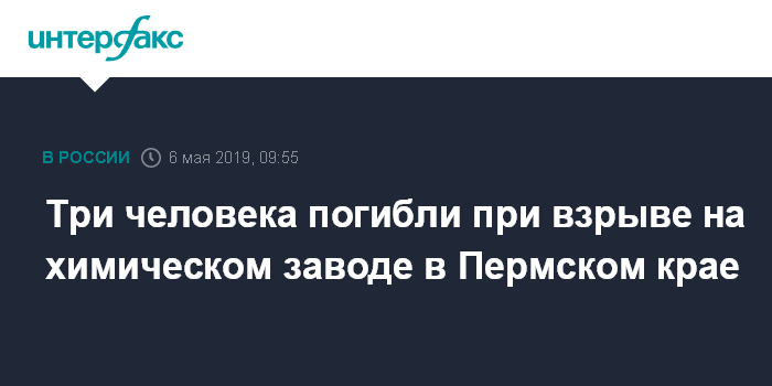 Три человека погибли при взрыве на химическом заводе в Пермском крае