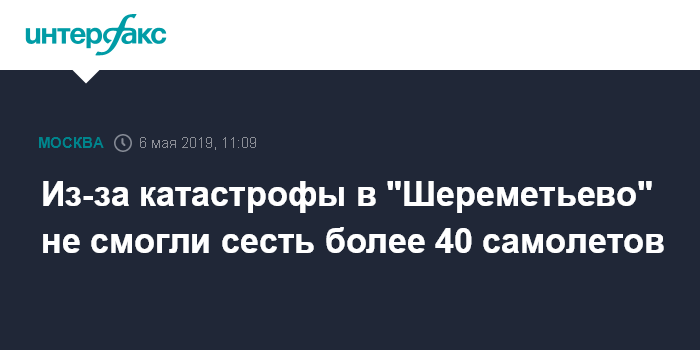 Москва. 6 мая. INTERFAX.RU - Несколько десятков рейсов не смогли приземлиться в "Шереметьево" накануне вечером из-за катастрофы самолета "Аэрофлота", сообщил "Интерфаксу" источник, знакомый с ситуацией.