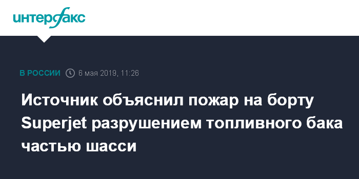 Источник объяснил пожар на борту Superjet разрушением топливного бака частью шасси