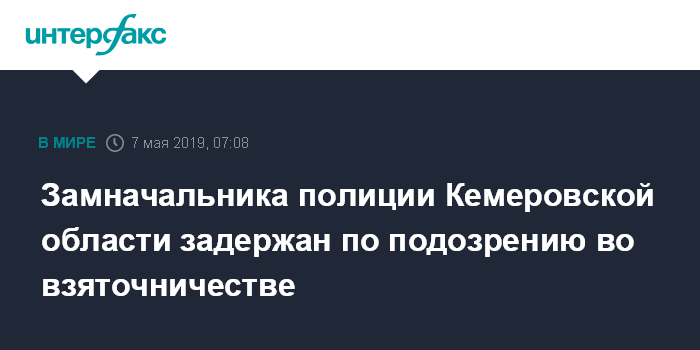 Москва. 7 мая. INTERFAX.RU - В Кемеровской области по подозрению во взяточничестве задержали заместителя начальника полиции региона по оперативной работе Вячеслава Безлюдько, сообщил во вторник агентству "Интерфакс" источник в правоохранительных органах.