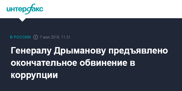 Адвокат генерала Марк Каверзин сообщил "Интерфаксу", что Дрыманову предъявлено обвинение в окончательной редакции, оно осталось неизменным. Генерал по-прежнему не признает вину.