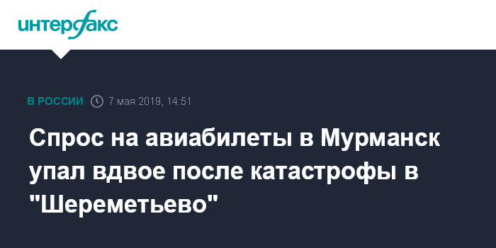 Спрос на авиабилеты в Мурманск упал вдвое после катастрофы в "Шереметьево"