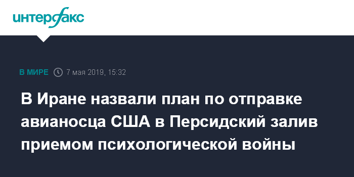 Накануне и.о. главы Пентагона Патрик Шанахан заявил, что решение об отправке на Ближний Восток авианосца "Авраам Линкольн" принято с учетом поступивших данных об угрозах со стороны Ирана. "Это - предусмотрительная передислокация. Речь идет о реакции на информацию о реальной угрозе, исходящей от иранского режима", - написал он в твиттере.