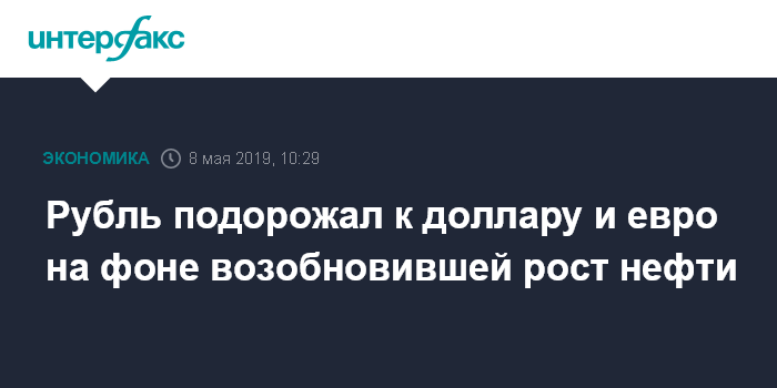 Как отмечают эксперты "Интерфакс-ЦЭА", рубль корректируется вверх к доллару и евро на старте последних полноценных торгов недели перед еще одними майскими праздниками после падения накануне. Поддержку рынку оказывает возобновление роста цен на нефть, при этом основное внимание игроков сосредоточено на торговом конфликте между США и Китаем.