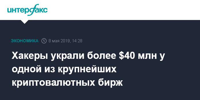 Москва. 8 мая. INTERFAX.RU - Binance, одна из крупнейших в мире криптовалютных бирж, сообщила о краже хакерами более $40 млн в результате "масштабного взлома" ее платформы.