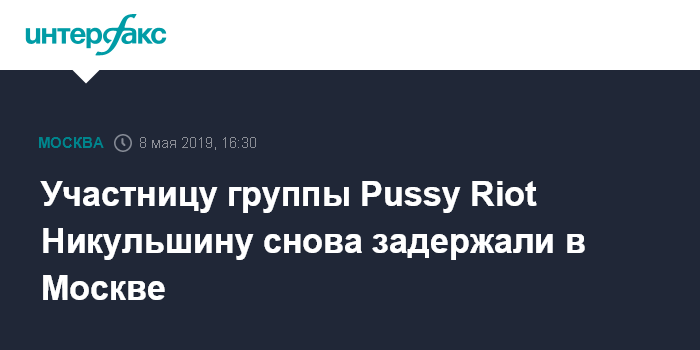 Москва. 8 мая. INTERFAX.RU - В Москве задержали участницу группы Pussy Riot Веронику Никульшину, сообщил "Интерфаксу" участник группы Петр Верзилов.