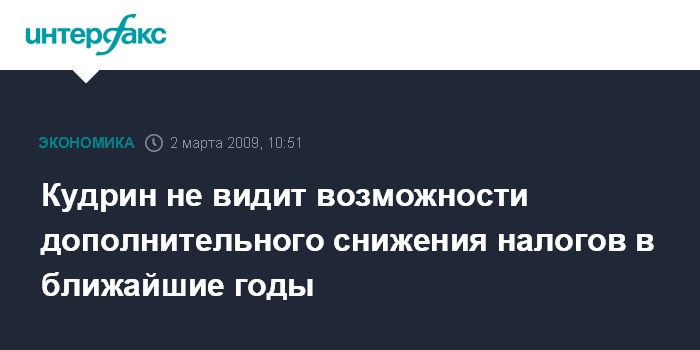 Москва. 2 марта. INTERFAX.RU - Вице-премьер, министр финансов РФ Алексей Кудрин не видит возможности для дополнительного снижения налогов в ближайшие годы.