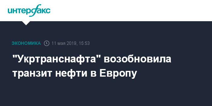 Москва. 11 мая. INTERFAX.RU - АО "Укртранснафта" (УТН) возобновило транзит нефти в Европейский союз по магистральному нефтепроводу "Дружба", сообщила в субботу пресс-служба УТН.