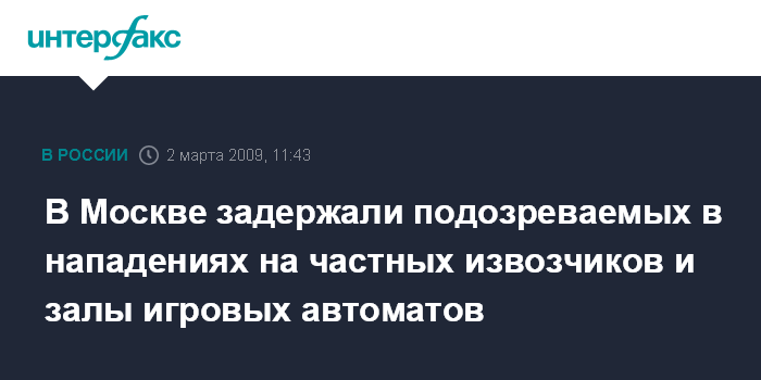 Москва. 2 марта. INTERFAX.RU - Сотрудники Московского уголовного розыска (МУР) задержали подозреваемых в серии нападений на залы игровых автоматов, а также водителей, подрабатывающих частным извозом.