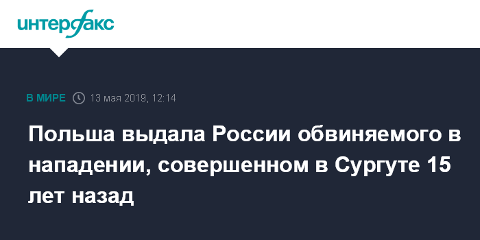 Польша выдала России обвиняемого в нападении, совершенном в Сургуте 15 лет назад