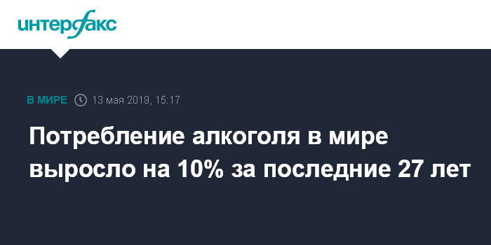 Москва. 13 мая. INTERFAX.RU - Уровень потребления алкоголя в мире вырос на 10% в период с 1990 года по 2017 год, говорится в исследовании, опубликованном в британском медицинском журнале The Lancet.