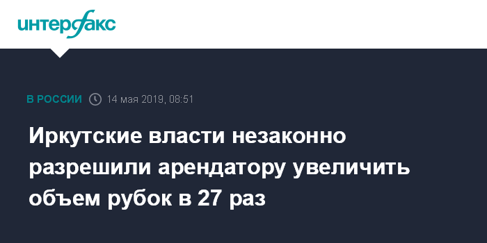 Москва. 14 мая. INTERFAX.RU - Арбитражный суд Иркутской области признал недействительным соглашение, согласно которому Министерство лесного комплекса региона разрешило заготовителю леса увеличить в 27 раз объем заготавливаемой древесины на арендуемом участке, сообщила пресс-служба Байкальской межрегиональной природоохранной прокуратуры.
