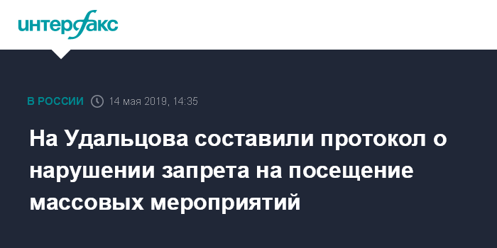 По словам Удальцова, протокол был составлен из-за того, что оппозиционер 1 мая давал интервью журналистам примерно в 100 метрах от входа на протестную демонстрацию левых сил и тем самым нарушил запрет на посещение массовых мероприятий, установленный ему до 2021 года в рамках административного надзора.