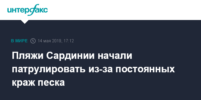 Москва. 14 мая. INTERFAX.RU - Пляжи итальянского острова Сардиния начали патрулировать офицеры из-за того, что туристы регулярно воруют с них песок, сообщает портал Gentside.