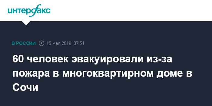 Москва. 15 мая. INTERFAX.RU - Пожар в многоквартирном доме произошел в Хостинском районе Сочи.