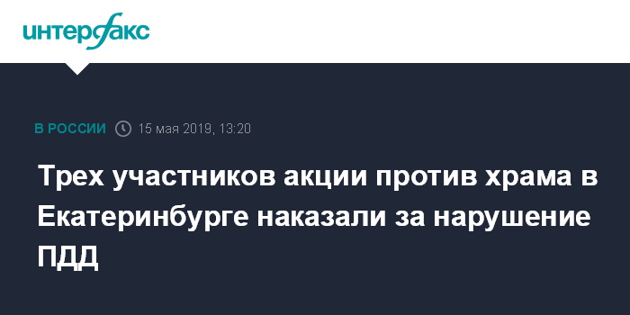 Москва. 15 мая. INTERFAX.RU - Полицейские привлекли к ответственности трех участников несанкционированной акции против строительства храма в Екатеринбурге, которые частично перекрыли проезжую часть. Об этом сообщает глава пресс-службы ГУ МВД России по Свердловской области Валерий Горелых.