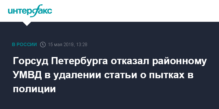 Горсуд Петербурга отказал районному УМВД в удалении статьи о пытках в полиции