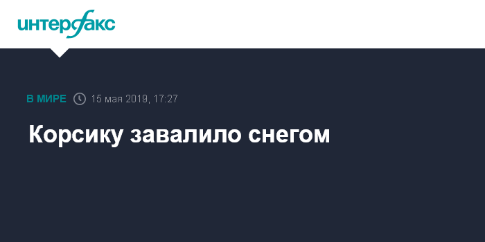 Москва. 15 мая. INTERFAX.RU - Мощный снегопад прошел в ночь на среду на французском острове Корсика в Средиземном море, горные перевалы завалило снегом, сообщают местные СМИ.