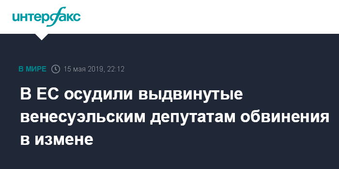 Москва. 15 мая. INTERFAX.RU - Пресс-секретарь верховного представителя ЕС по иностранным делам Майя Косьянчич в среду заявила, что Евросоюз осуждает решение Верховного суда Венесуэлы о выдвижении обвинений в адрес четверых депутатов Национальной ассамблеи в измене, говорится в коммюнике на сайте ЕС.