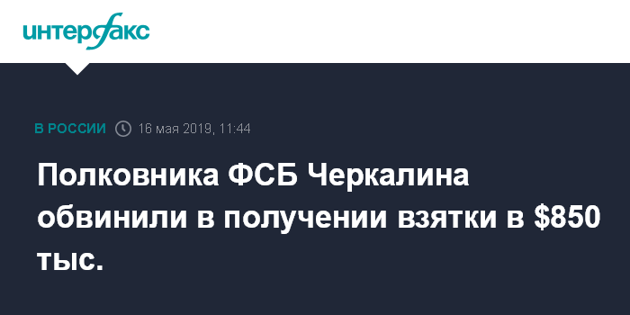Полковника ФСБ Черкалина обвинили в получении взятки в $850 тыс.