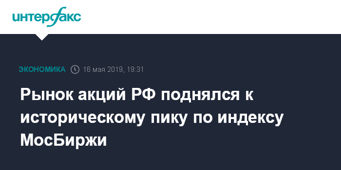 Москва. 16 мая. INTERFAX.RU - Рынок акций РФ в четверг поднялся в область исторического максимума по индексу МосБиржи на фоне раллирующей нефти и роста мировых фондовых площадок в ожидании торговой сделки США с Китаем.