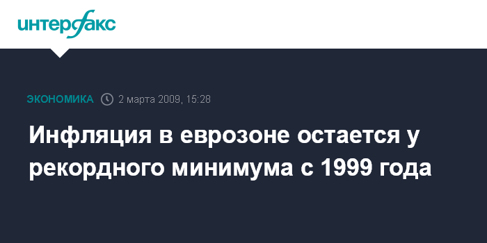 Брюссель. 2 марта. INTERFAX.RU - Темпы инфляции в еврозоне остались в феврале у рекордного минимума с 1999 г. и составили 1,2%, сообщило агентство Bloomberg со ссылкой на предварительные данные Статистического управления Европейского союза.