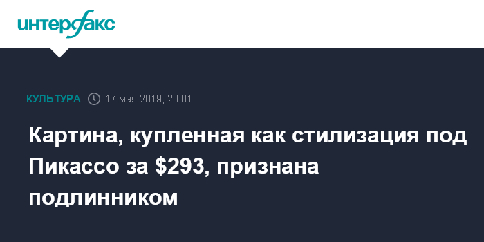 Картина, купленная как стилизация под Пикассо за $293, признана подлинником