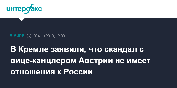 Москва. 20 мая. INTERFAX.RU - В Кремле не комментируют скандал, вызванный видеозаписью беседы бывшего вице-канцлера Австрии Хайнца-Кристиана Штрахе с предполагаемой россиянкой, так как не имеют к этому отношения, заявил пресс-секретарь президента РФ Дмитрий Песков.