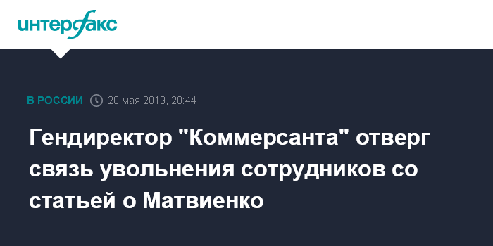 Гендиректор "Коммерсанта" отверг связь увольнения сотрудников со статьей о Матвиенко