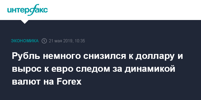 Москва. 21 мая. INTERFAX.RU - Доллар немного растет, евро снижается на Московской бирже во вторник утром; рубль стабилен к бивалютной корзине в условиях разнонаправленной динамики в основных парах, реагирующих на снижение евро к доллару на Forex.