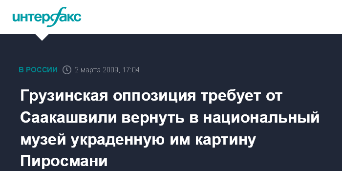 Грузинская оппозиция требует от Саакашвили вернуть в национальный музей украденную им картину Пиросмани