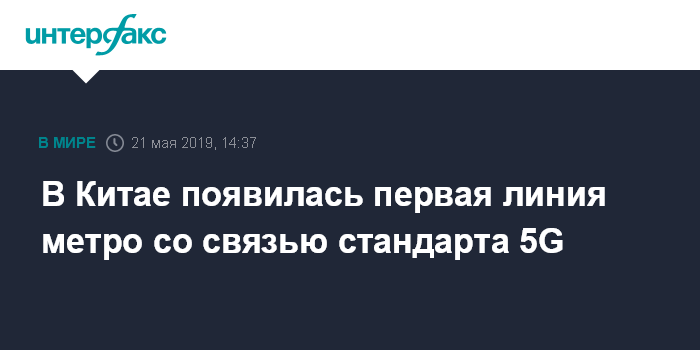 Москва. 21 мая. INTERFAX.RU - В городе Чжэнчжоу, административном центре провинции Хэнань, появилась первая в Китае линия метрополитена с сетью новейшего поколения 5G. Средняя скорость загрузки данных на станциях пятой линии городского метрополитена составляет 700 Мбит/с, сообщил поставщик телекоммуникационных услуг China Tower.