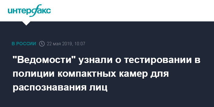 Москва. 22 мая. INTERFAX.RU - Полицейские начали тестировать компактные видеорегистраторы российского производства с функцией распознавания лиц, пишет в среду газета "Ведомости".