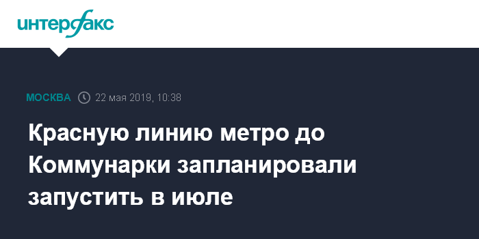 Москва. 22 мая. INTERFAX.RU - Участок Сокольнической линии метро от станции "Филатов луг" до Коммунарки могут запустить в конце июня - начале июля. Об этом заявил журналистам в среду первый заместитель руководителя департамента строительства Москвы Петр Аксенов.