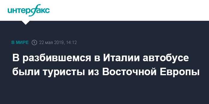 Москва. 22 мая. INTERFAX.RU - В разбившемся в Италии автобусе находились туристы из Восточной Европы, погибшая - женщина-гид, сообщает в среду издание Il Messaggero.