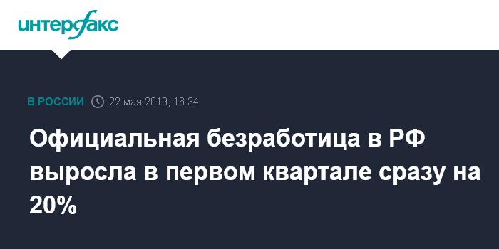Официальная безработица в РФ выросла в первом квартале сразу на 20%