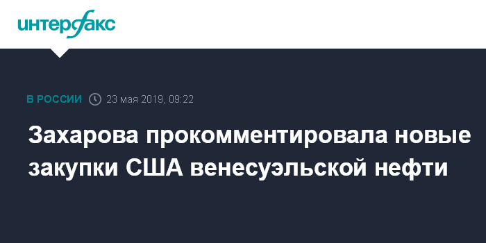 Москва. 23 мая. INTERFAX.RU - Официальный представитель МИД РФ Мария Захарова отреагировала на сообщения о возобновлении закупок венесуэльской нефти Соединенными Штатами Америки.