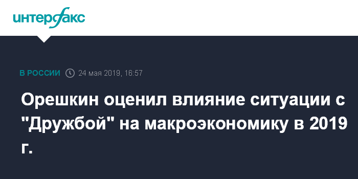 Орешкин оценил влияние ситуации с "Дружбой" на макроэкономику в 2019 г.