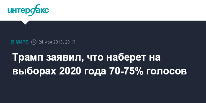 Трамп заявил, что наберет на выборах 2020 года 70-75% голосов