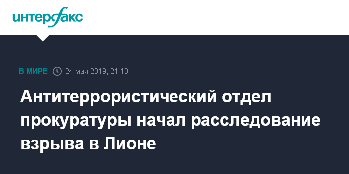 Москва. 24 мая. INTERFAX.RU - Антитеррористическое подразделение парижской прокуратуры приступило к расследованию взрыва в Лионе, сообщает BFM TV.