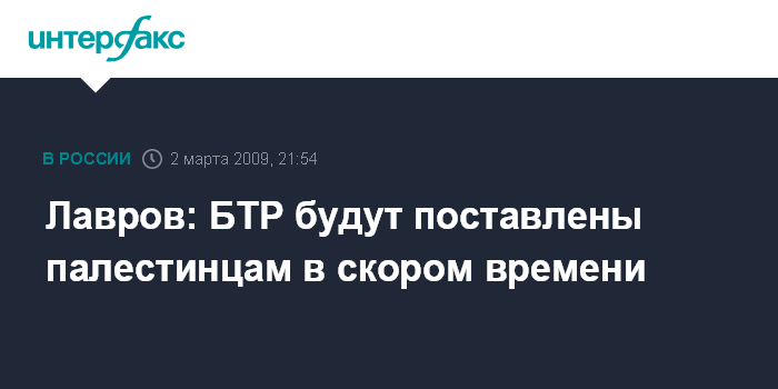 Лавров: БТР будут поставлены палестинцам в скором времени