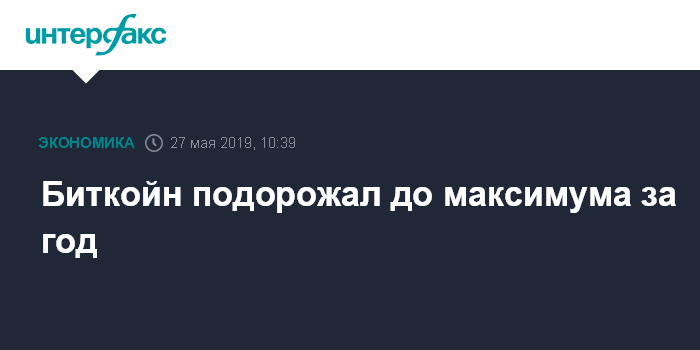 Москва. 27 мая. INTERFAX.RU - Курс биткойна активно растет на торгах в понедельник и достиг максимальной отметки с мая 2018 года.