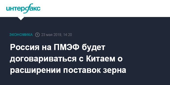 Россия на ПМЭФ будет договариваться с Китаем о расширении поставок зерна