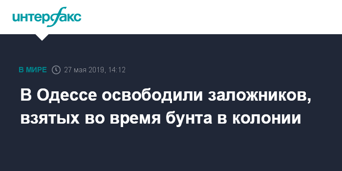 Москва. 27 мая. INTERFAX.RU - В Южной исправительной колонии №51 в Одессе освободили заложников, захваченных в время бунта заключенных, несколько зачинщиков беспорядков задержаны, сообщила в понедельник уполномоченный по правам человека на Украине Людмила Денисова со ссылкой на данные своего представителя Александра Остапенко.