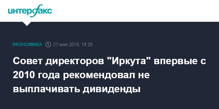 Совет директоров "Иркута" впервые с 2010 года рекомендовал не выплачивать дивиденды
