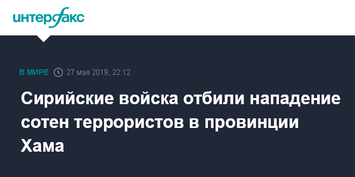 По его данным, "ночью 26 мая боевики террористической группировки "Хайат Тахрир Аш-Шам" и союзных ей формирований одновременно с двух направлений атаковали позиции правительственных сил в районе населенного пункта Кафер-Нбуда на севере провинции Хама".